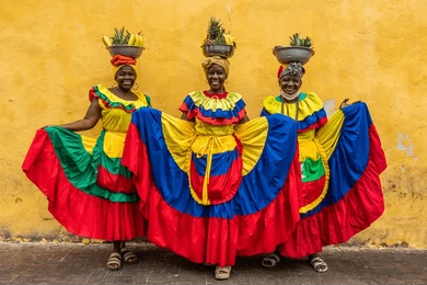 I think you may have seen some famous examples of this as one of the Colombian icons called “Palenqueras” (photo below), a group of women dressed beautifully with big and colorful dresses,. They are street sellers in Cartagena and near zones of the Atlantic coast of Colombia.